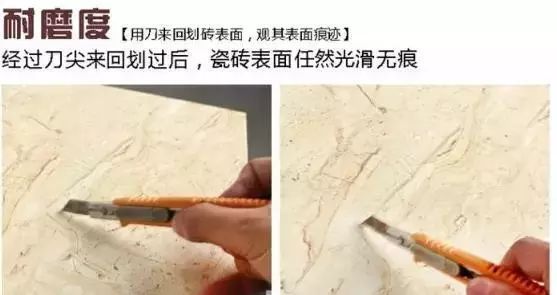 现在瓷砖不管是抛光砖、微晶石、全抛釉、仿古砖在耐磨程度上都已经达到了质的飞跃,基本你怎么去刮去划都不会有问题的,如果这都保证不了,那还是早点扔了换个砖把!
